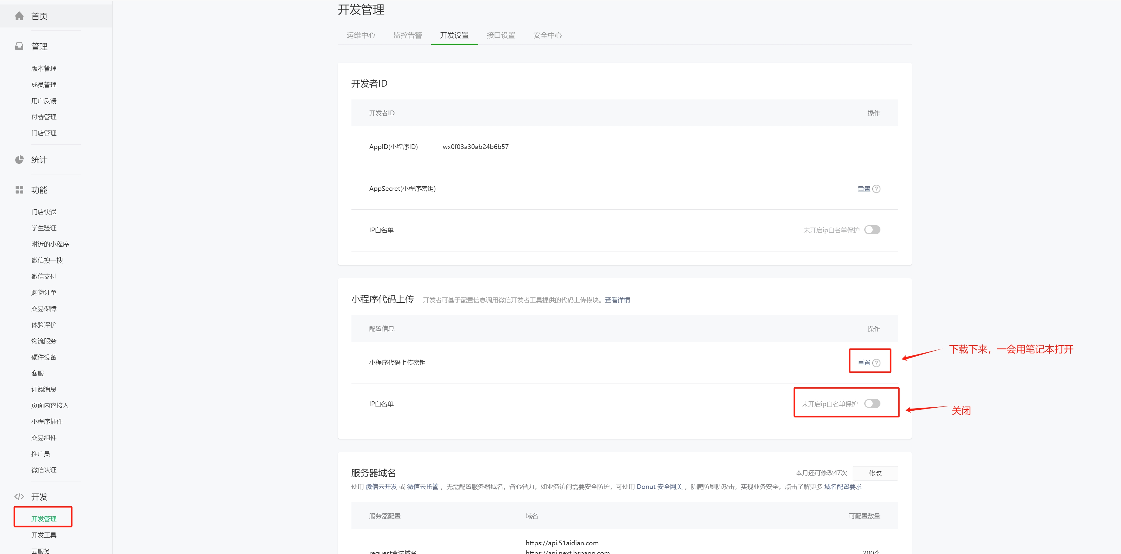 # 配置小程序服务器域名