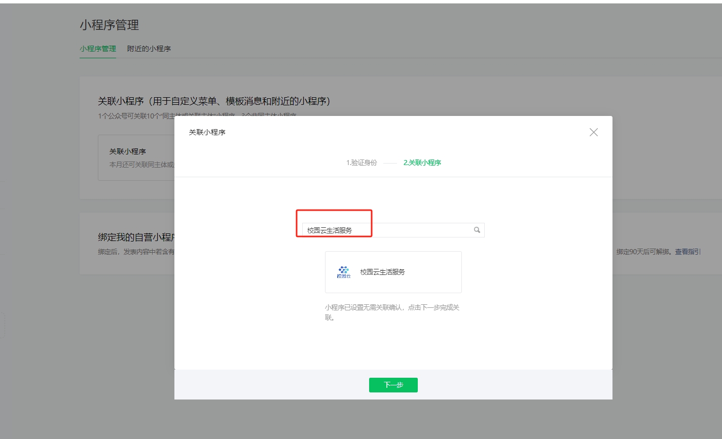 同样是将小程序绑定到公众号上面